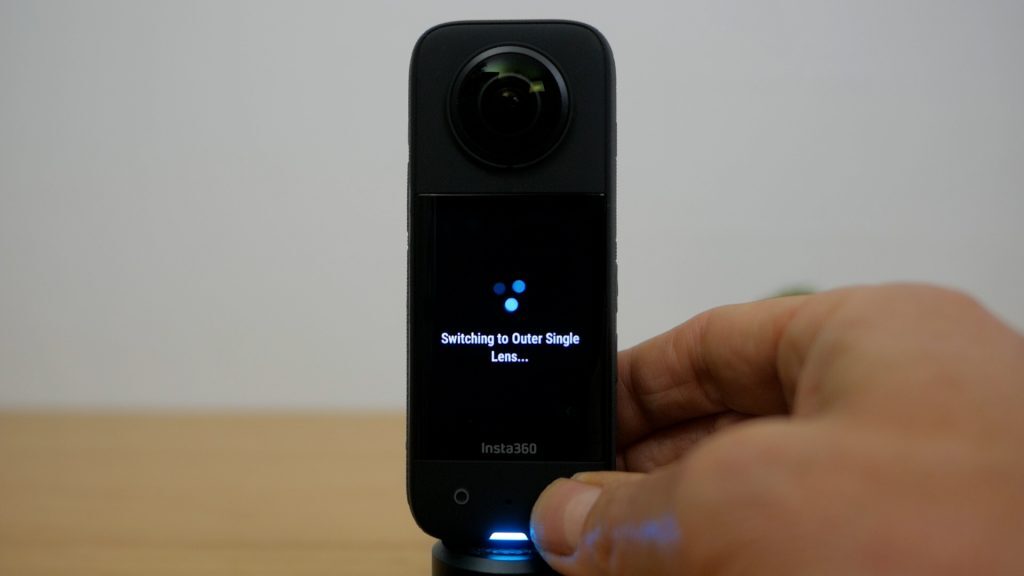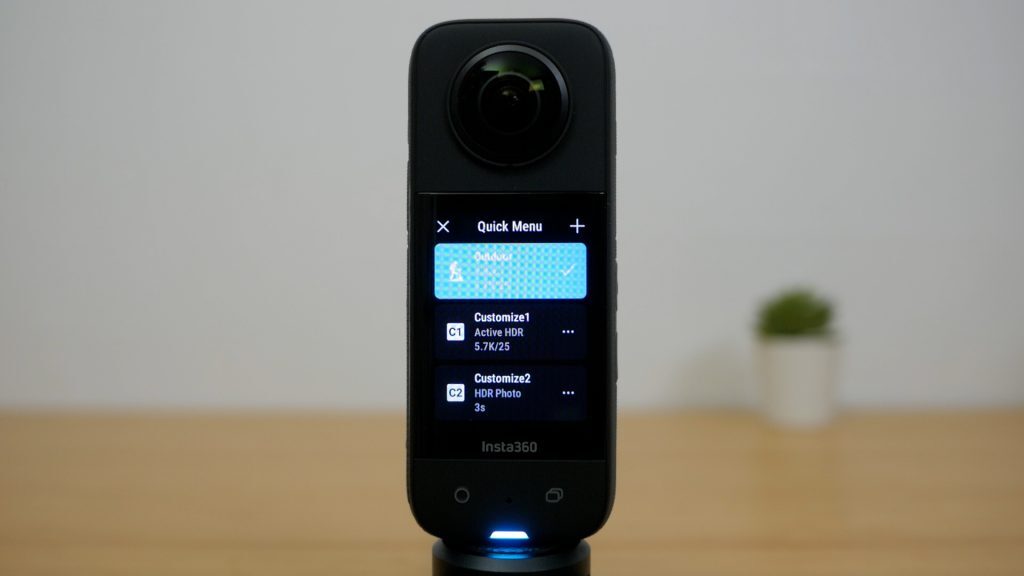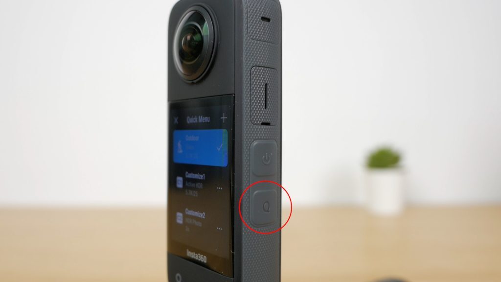 2つの新しいボタンもあります。以前と同じように、キャプチャーと電源ボタンがあります。ただし、キャプチャ ボタンの横には、360 度モードとシングル レンズ モードを切り替える専用のレンズ ボタンと、カスタム プリセットを選択するためのクイック ボタンがあります。