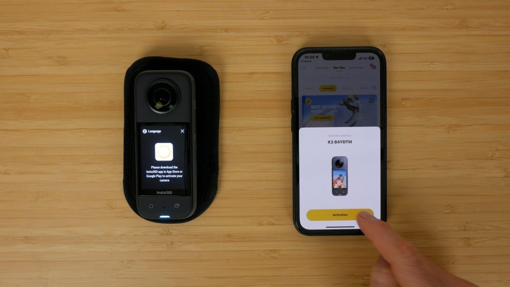 開始する前に、Insta360 スマートフォン アプリで X3 をアクティブ化する必要があります。新しいファームウェアが利用可能な場合は、更新するように求められます。問題を回避するために、ファームウェアを更新する前に、最初にアプリに接続してカメラを有効にしてください。