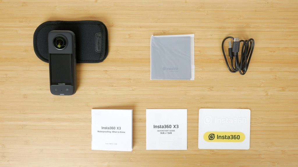 箱の中には、カメラ本体、ソフト ポーチ、USB-A から USB-C への充電ケーブル、レンズ クリーニング クロス、ステッカー、簡単なクイック スタート ガイドが入っています。自撮り棒は含まれていません。ほとんどの場合、カメラを使用するために必要です。ソフト ポーチは便利ですが、Insta360 が古い学校の格納式レンズ ガードを組み込む方法を見つけてくれることを願っています。カメラを下に置くたびに、ポーチを元に戻すか、レンズを柔らかいものの上に注意深く置く必要があります。土台で直立できますが、安定しません。