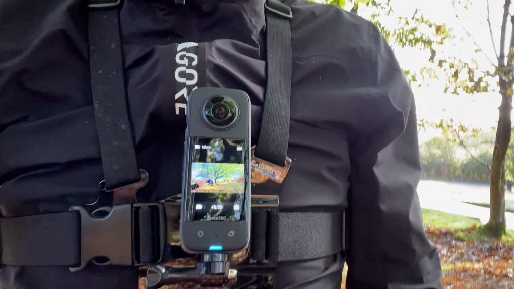 このシングル レンズ モードをテストするために、カメラをチェスト ハーネスに取り付けました。