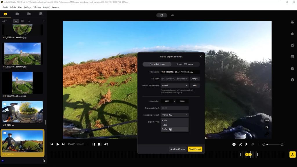 また、PC または Mac にフッテージがあると、Insta360 Studio アプリを使用できます。このアプリは、より適切な高品質の ProRes 形式でフッテージをエクスポートするなど、スマートフォン アプリでは実行できないいくつかのオプションを使用して、より本格的な使用に対応できます。さらに編集するため。私が見たいと思っていた組み込みのストレージがないことは言及する価値があります-少量でも。 メモリーカードを忘れた緊急事態に備えて。
